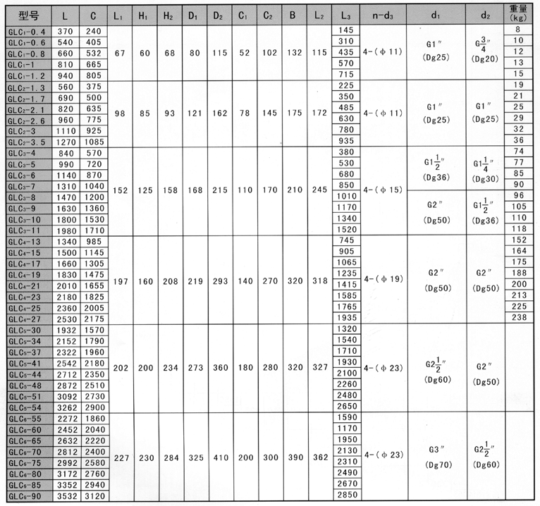 | GLC | 0.4~1.2 | 0.6 1.0 1.6 | ≤100 | ≤0.1 | ≤0.05 | 1:1左右 | 20~300 | ≥350 |